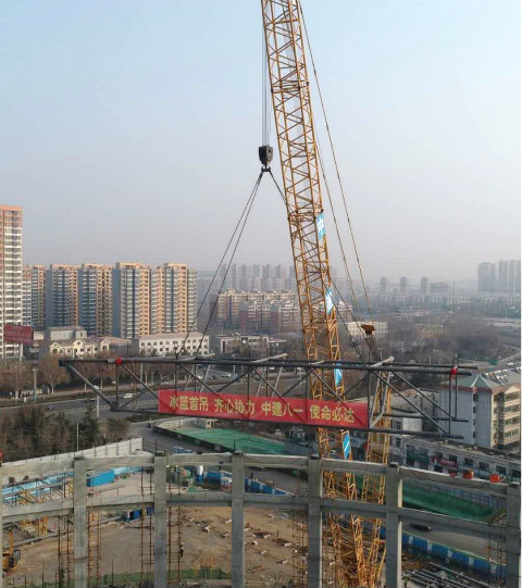 公司承建萬達冰籃球館項目順利完成新年“第一吊”