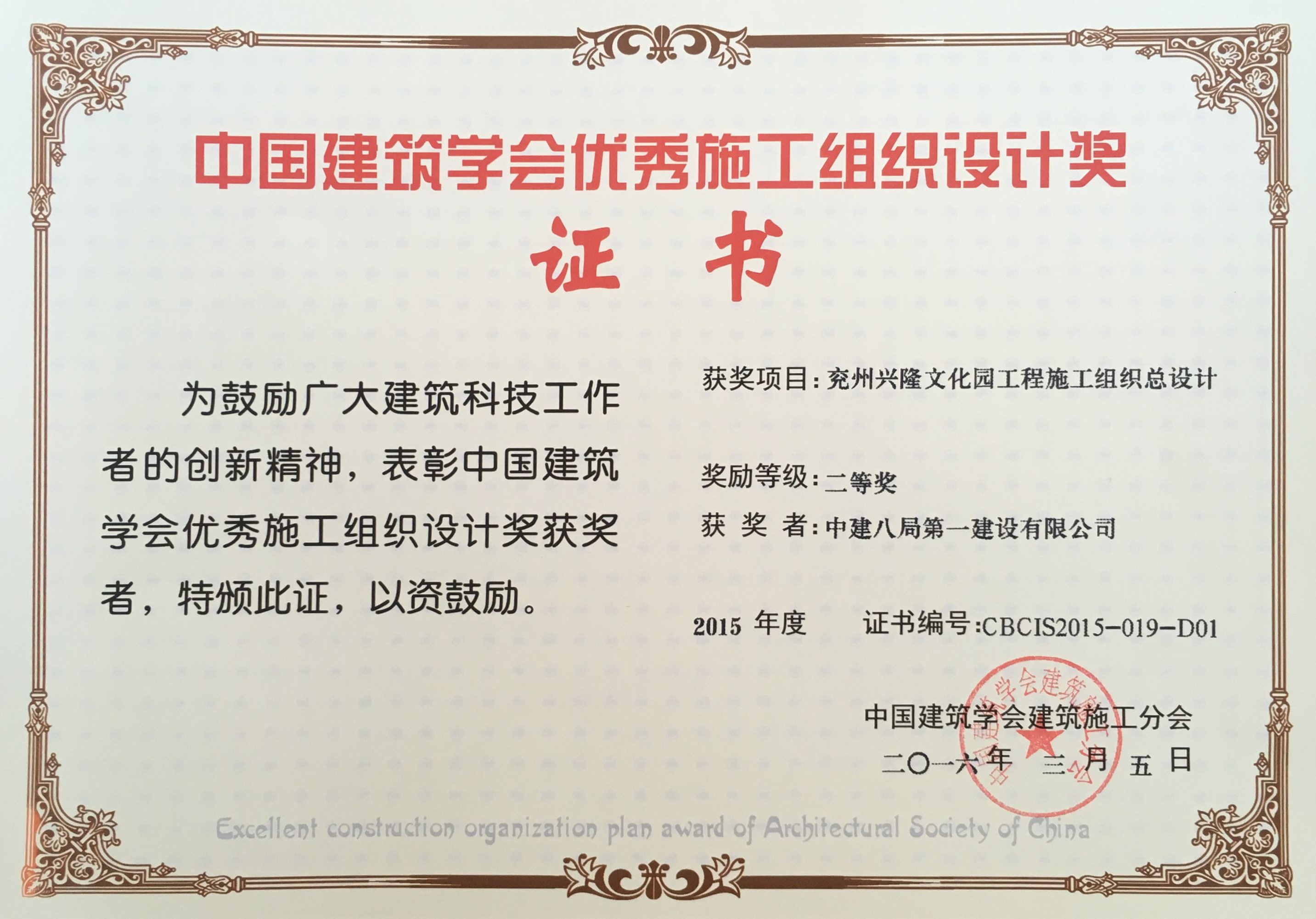 公司榮獲中國建筑設(shè)計獎(施工組織設(shè)計)四項
