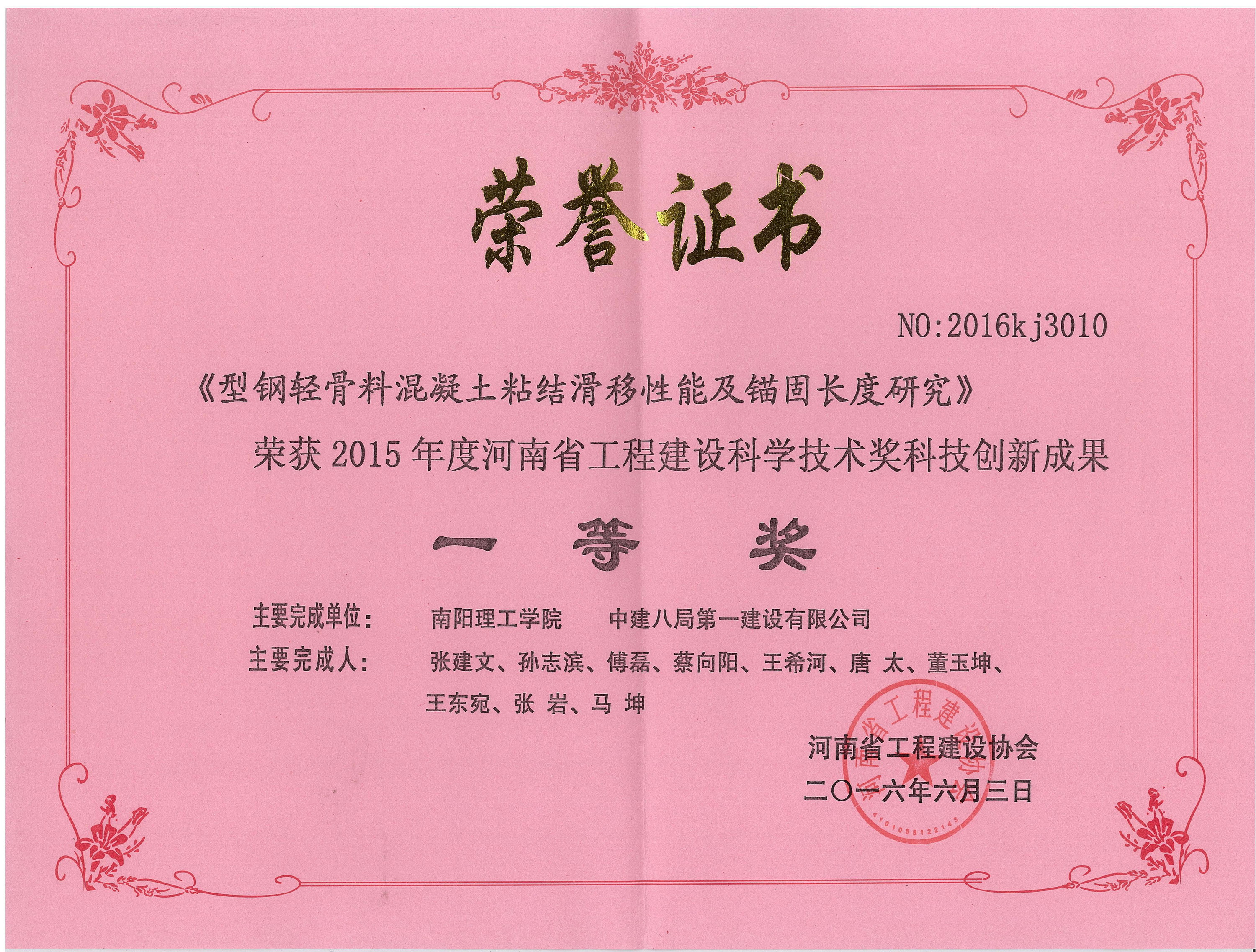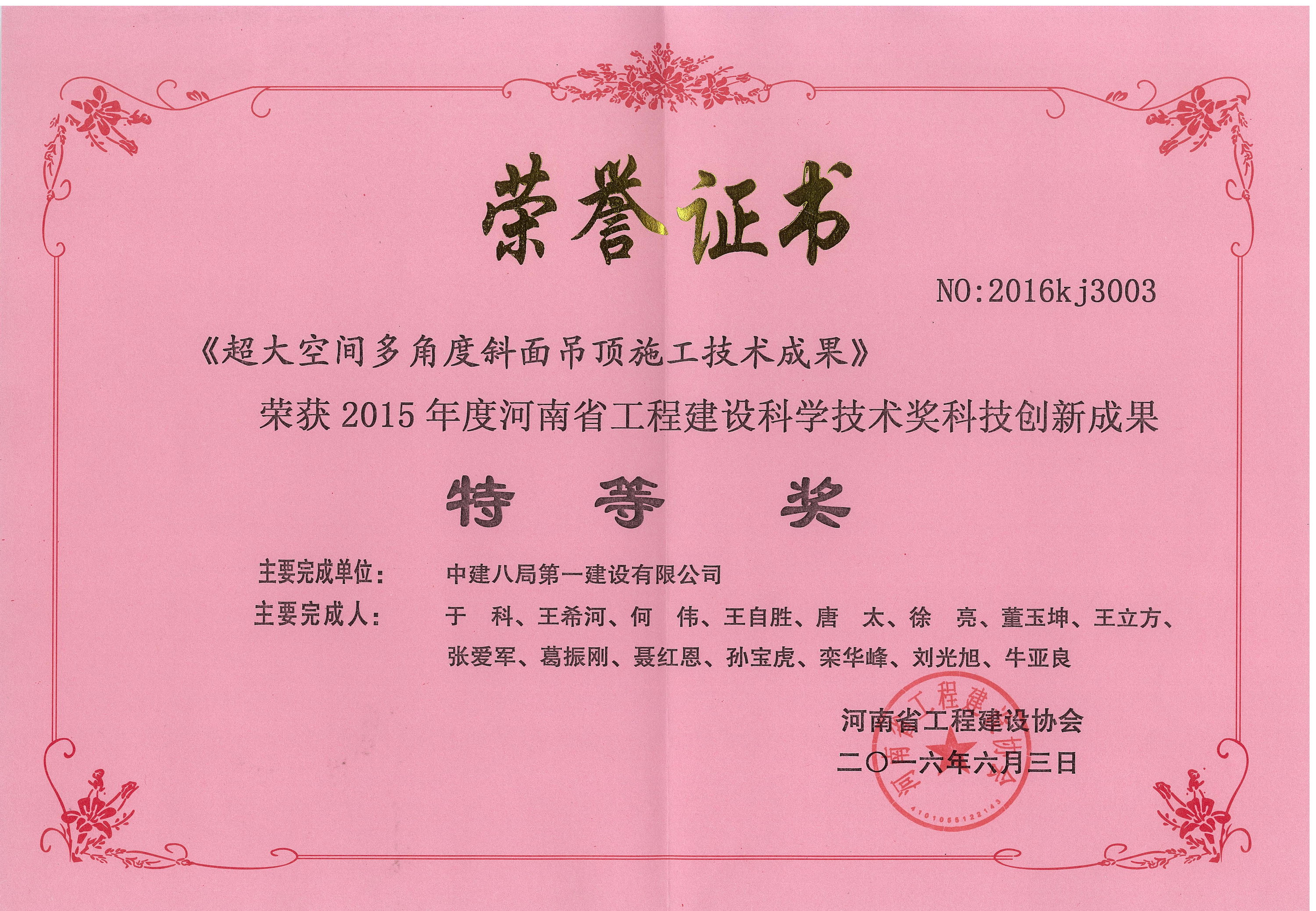 2015年度河南省工程建設科學技術獎已經(jīng)揭曉,共評選出科技創(chuàng)新成果36項,我公司共榮獲4項,其中特等獎1項,一等獎2項,二等獎1項。