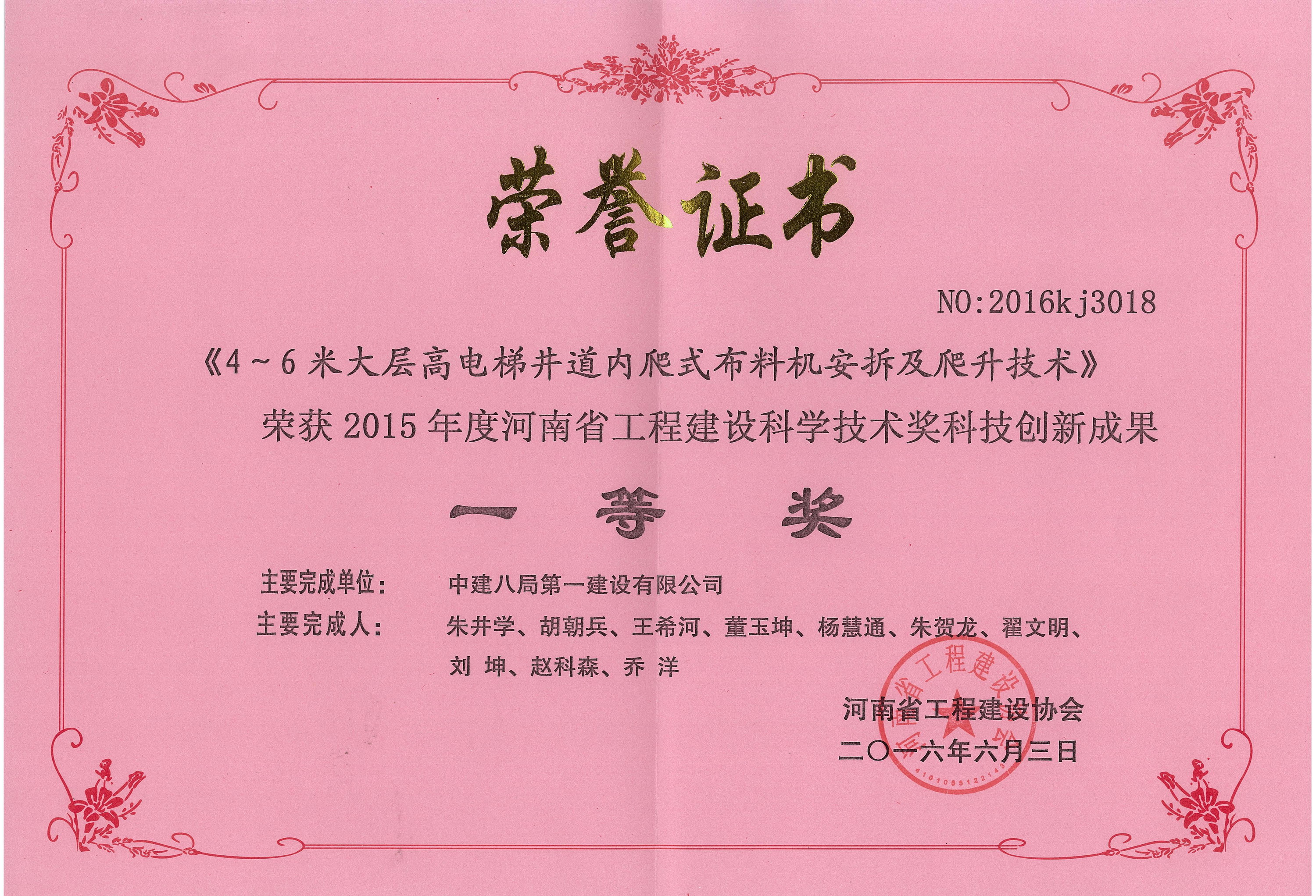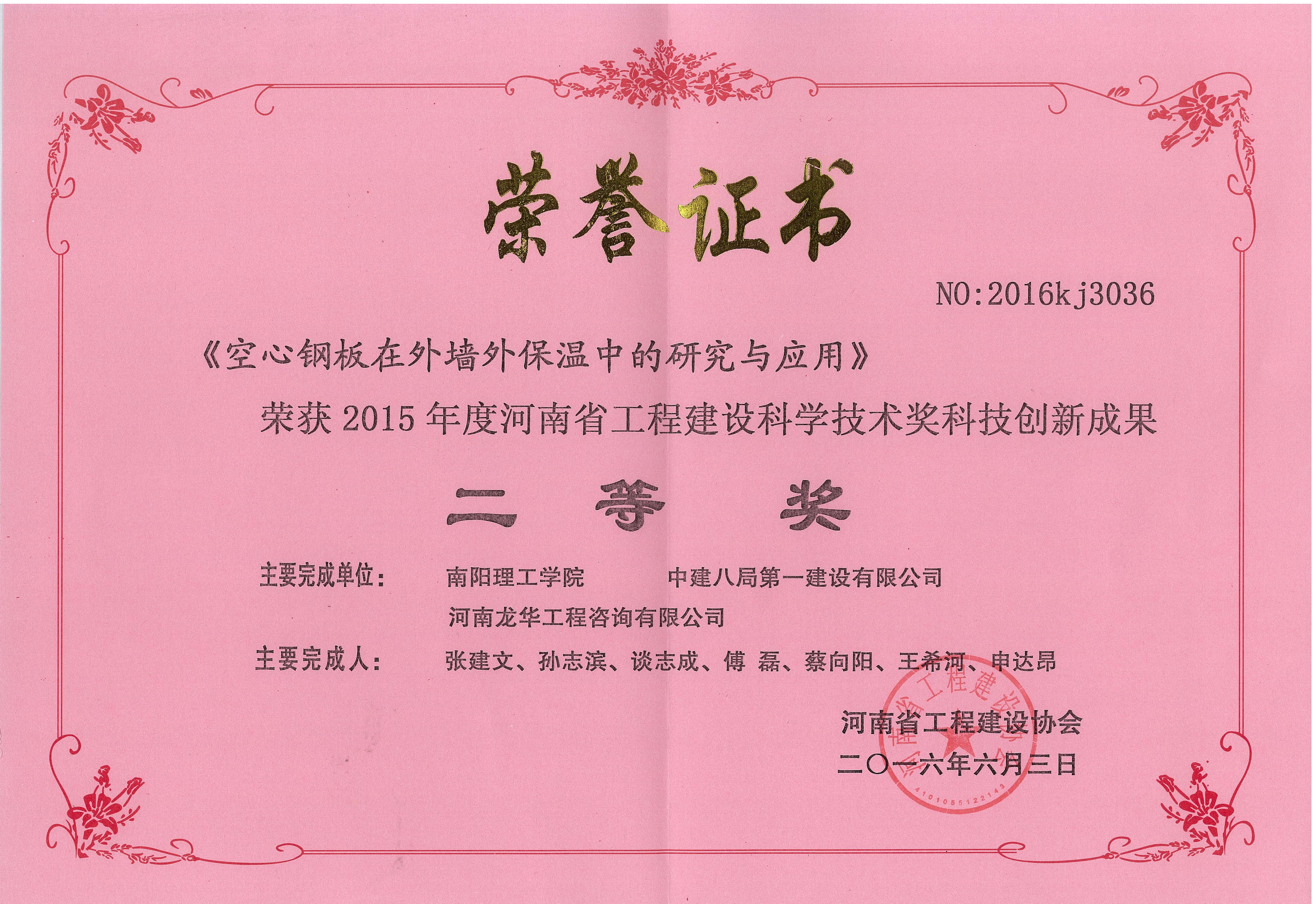 公司榮獲2015年度河南省工程建設科學技術獎4項