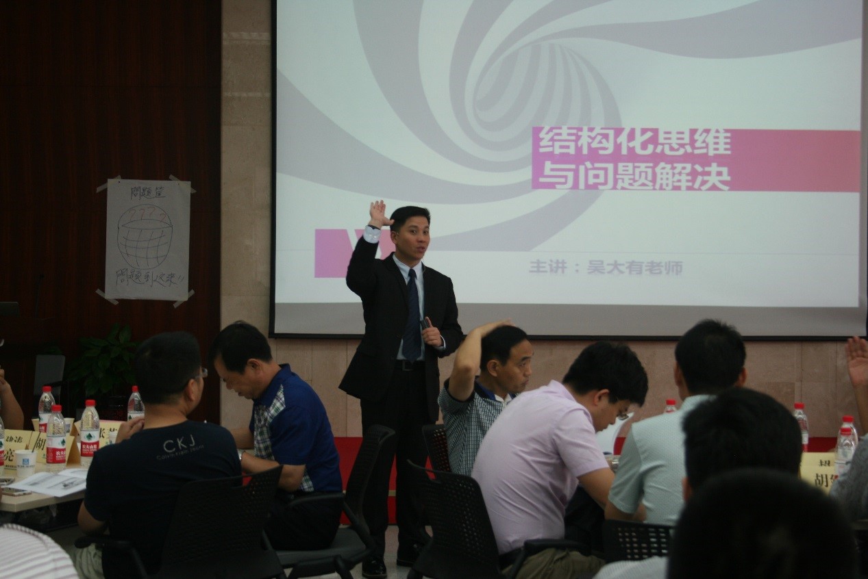 6月19日,臺灣知名結(jié)構(gòu)化思維培訓(xùn)師吳大有老師用一天的時間,以邏輯學(xué)為基礎(chǔ),講述了金字塔原理,通過面授、實操、互動等多種方式對項目經(jīng)理們實施了《結(jié)構(gòu)化思維與問題解決》的培訓(xùn),對項目經(jīng)理們工作中運用結(jié)構(gòu)化邏輯實現(xiàn)管理目的有一幫助與指導(dǎo)。