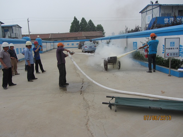 為增強(qiáng)施工現(xiàn)場全體人員的消防意識,搞好消防工作,確?,F(xiàn)場人員及財產(chǎn)安全,省會文化藝術(shù)中心配套高層ⅠⅢ標(biāo)段項目部于2013年6月7日組織進(jìn)行了消防應(yīng)急演練活動。
