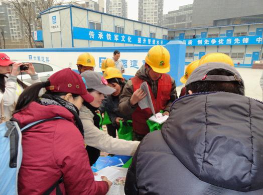 雷鋒日當(dāng)天,由法制日?qǐng)?bào)社副總編輯陳晶晶帶隊(duì)組成的“學(xué)雷鋒、樹(shù)新風(fēng)”法制宣傳小組來(lái)到望京SOHO項(xiàng)目部采訪參觀,并與項(xiàng)目管理人員及工人交流雷鋒精神與法律知識(shí)。