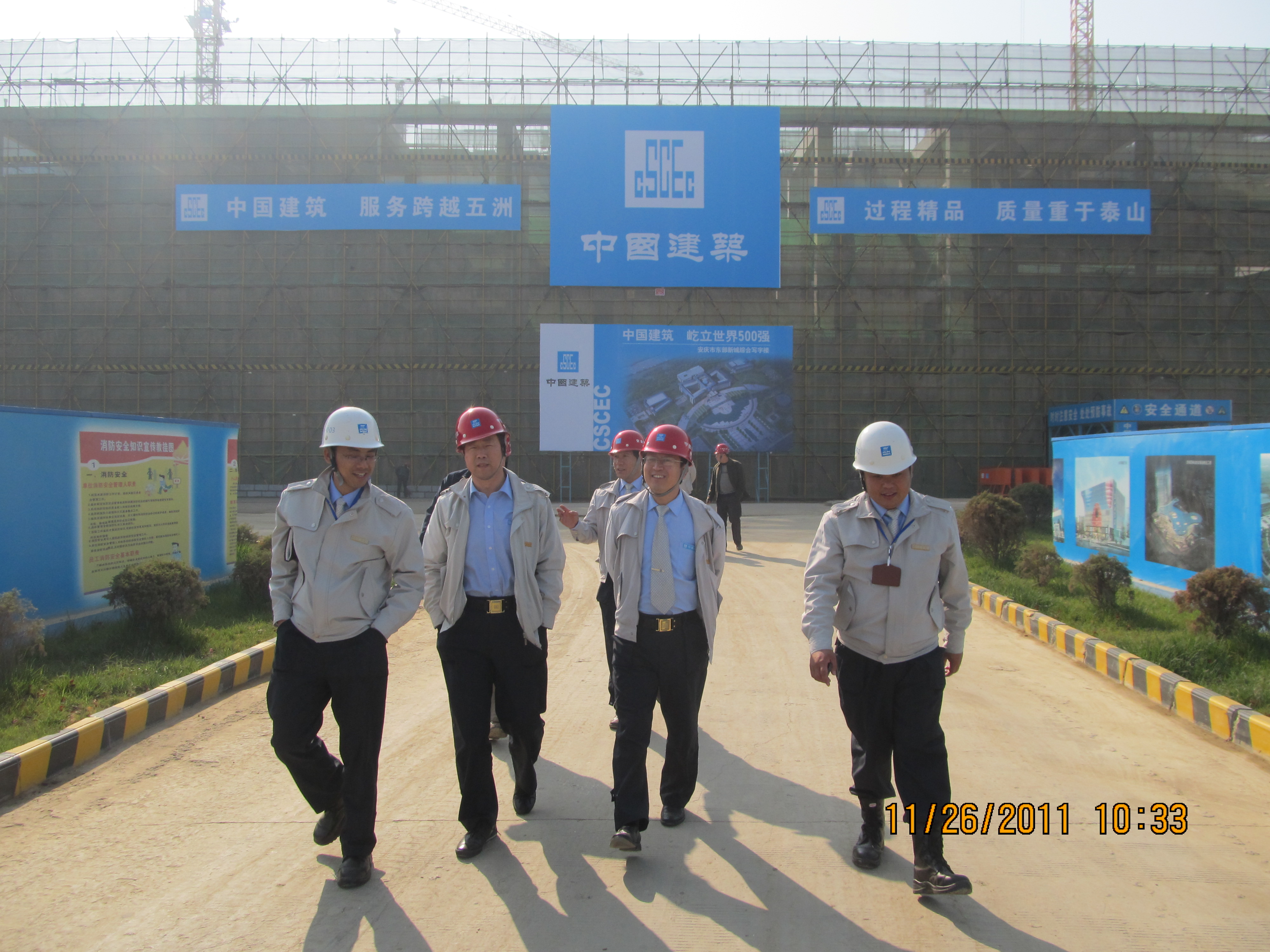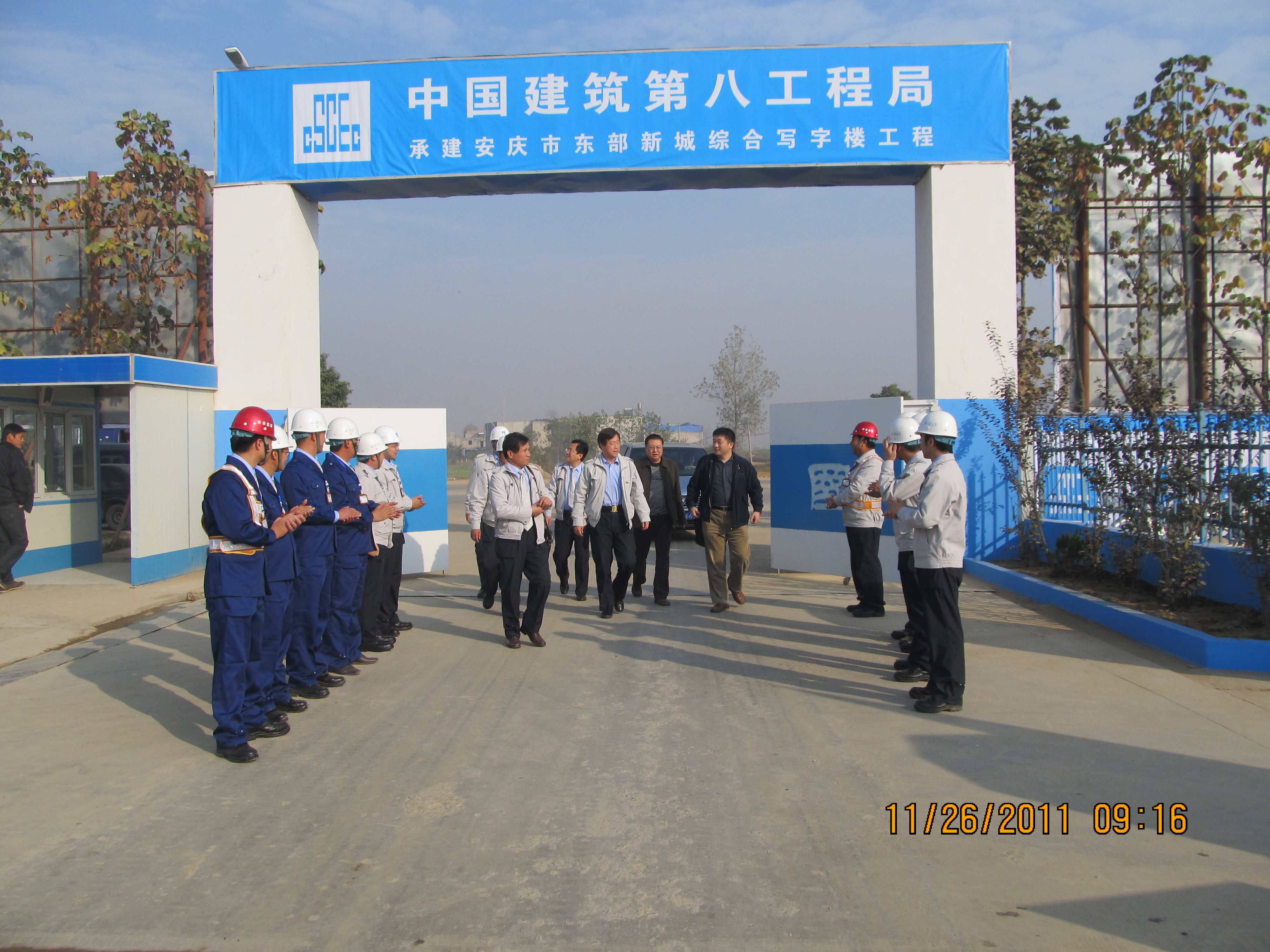 2011年11月26日,中建總公司政工部CI檢查組苑丁處長(zhǎng)、中建一局谷峰書記蒞臨安慶市東部新城綜合寫字樓項(xiàng)目進(jìn)行CI創(chuàng)優(yōu)驗(yàn)收。