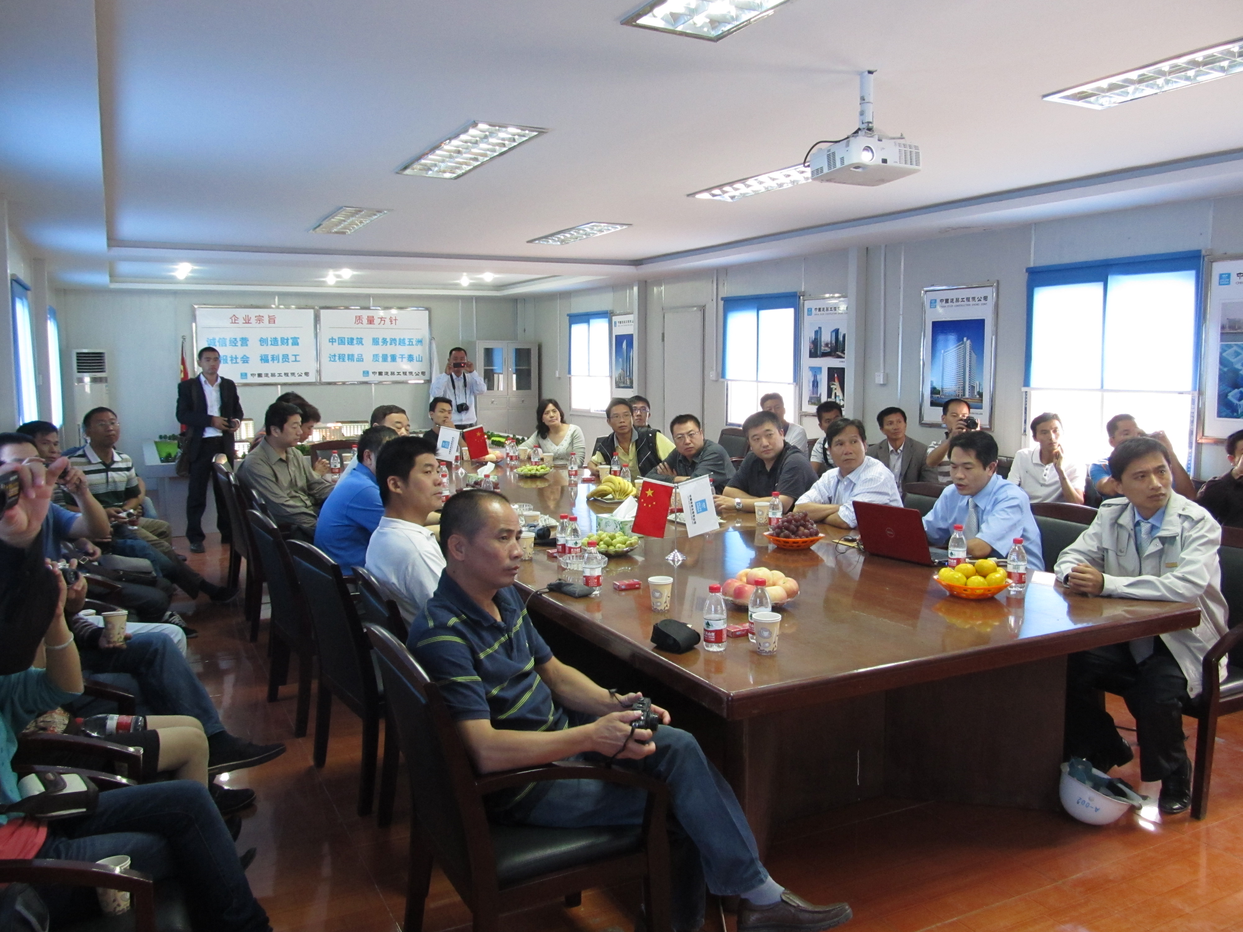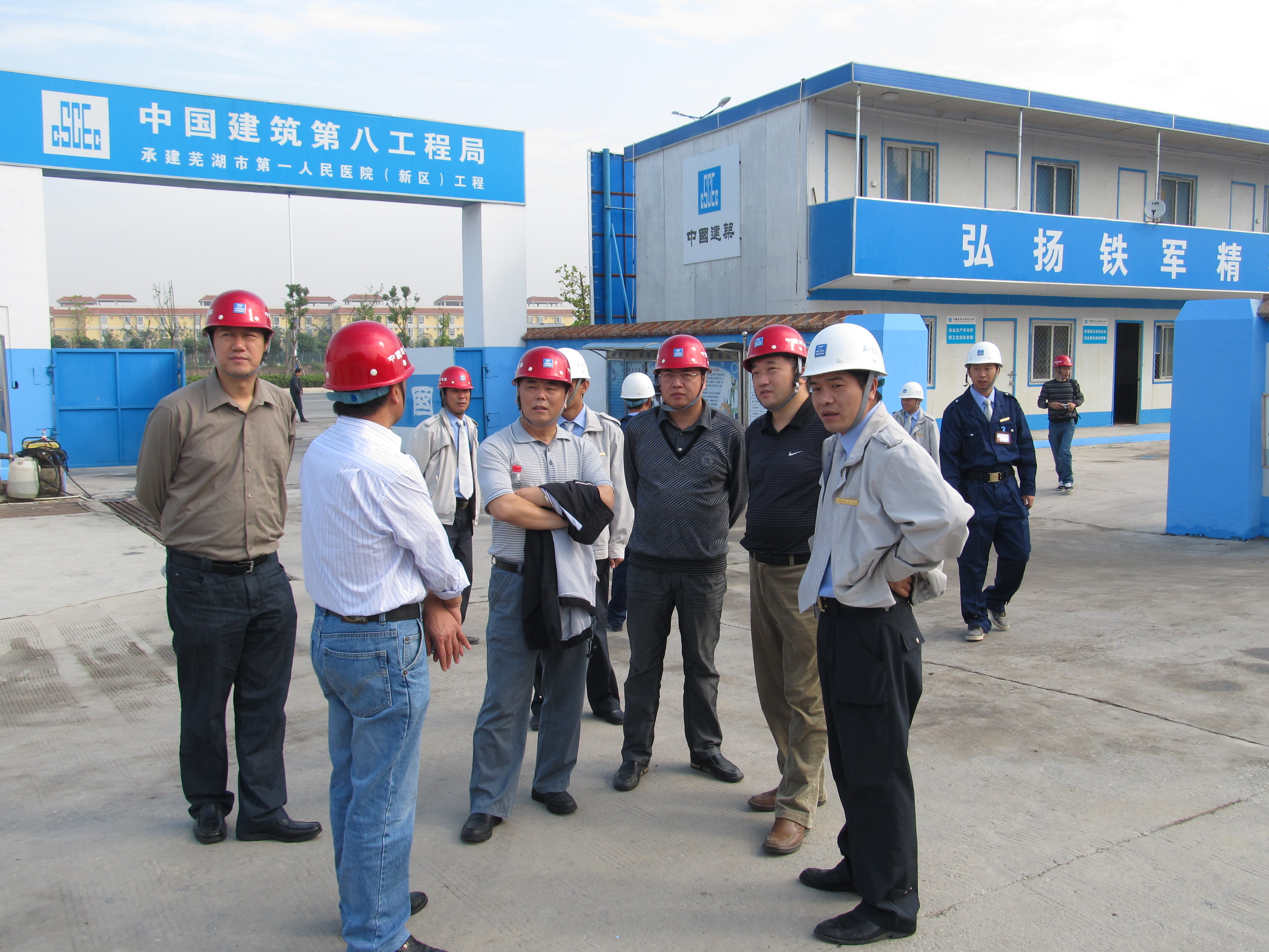 2011年9月22日,中建總公司廣東辦事處閔國(guó)安主任一行35人蒞臨蕪湖一院項(xiàng)目進(jìn)行CI工作交流學(xué)習(xí)。
