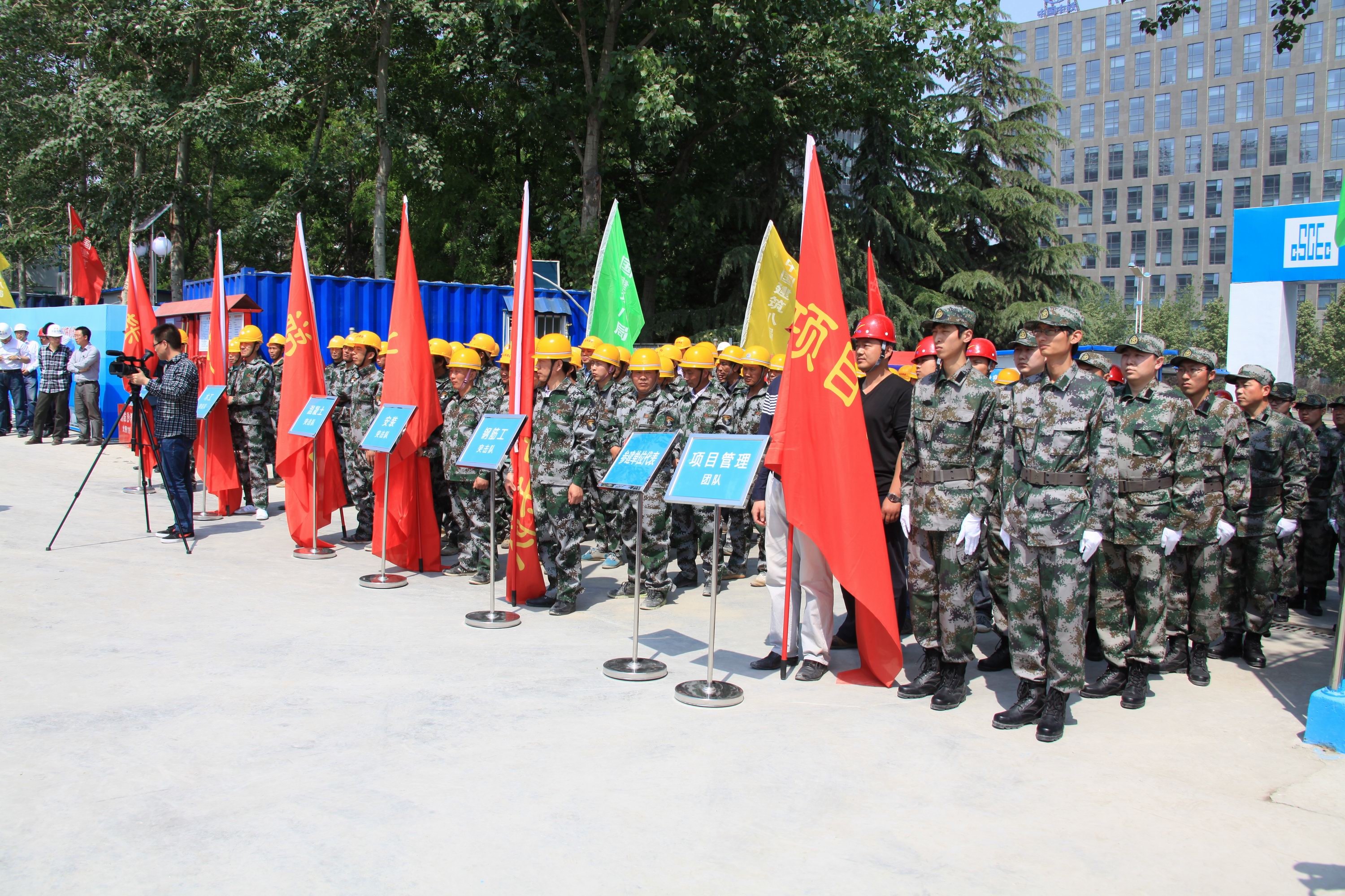 濟(jì)南漢峪金融中心A4地塊二標(biāo)段項(xiàng)目部舉行勞動競賽、三號聯(lián)創(chuàng)、創(chuàng)雙優(yōu)暨準(zhǔn)軍事化管理啟動儀式