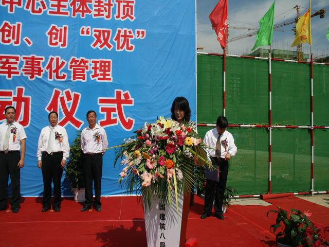 儀式上,青島市建管局副局長孫維民、公司黨委書記許紅、青島市李滄區(qū)建設(shè)局局長劉波等領(lǐng)導(dǎo)分別為中建八局項目黨員先鋒號、工人先鋒號、青年文明號授旗,并為準(zhǔn)軍事化管理項目及效能監(jiān)察重點工程揭牌。青島市建管局副局長對八局在李滄萬達廣場項目建設(shè)中取得的成績及此次活動給予了充分肯定,他指出李滄萬達廣場項目是青島市重點項目,這一工程對樹立城市形象、提高城市品位、改善李滄區(qū)商業(yè)環(huán)境、促進李滄區(qū)社會經(jīng)濟發(fā)展具有重要意義。高質(zhì)量、高水平、高效率地完成這一施工任務(wù),是對施工單位的一次重大考驗。中建八局是一支有著優(yōu)良傳統(tǒng)的中國建筑“國家隊”,在南征北戰(zhàn),報效祖國、奉獻社會的建設(shè)征程上曾經(jīng)做出了許多驕人的業(yè)績,形成了“特別能吃苦,特別能戰(zhàn)斗,特別能奉獻”的鐵軍精神,希望八局在李滄萬達廣場工程建設(shè)中,繼續(xù)保持和發(fā)揚鐵軍傳統(tǒng),充分發(fā)揮黨員的先鋒模范作用、充分發(fā)揮工人階級的主人翁精神,充分發(fā)揮青年的生力軍作用,以一流的速度、一流的質(zhì)量把工程建設(shè)成精品工程,安全工程、滿意工程和廉潔工程!