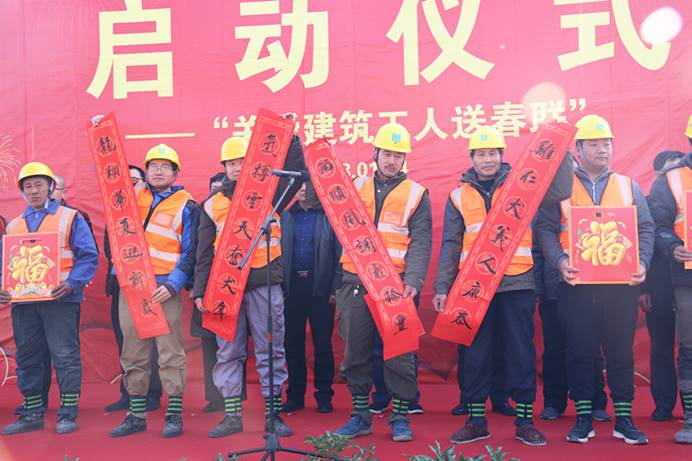 公司暖冬系列活動(dòng)啟動(dòng)儀式暨關(guān)愛(ài)建筑工人送春聯(lián)活動(dòng)在濟(jì)南中央商務(wù)區(qū)安置區(qū)(CBD)項(xiàng)目舉行