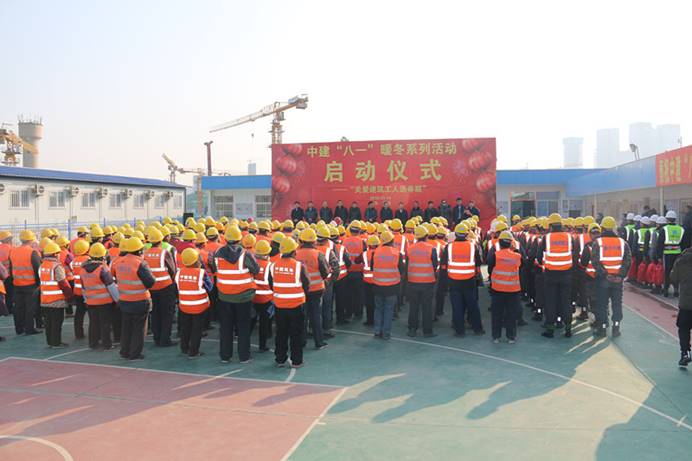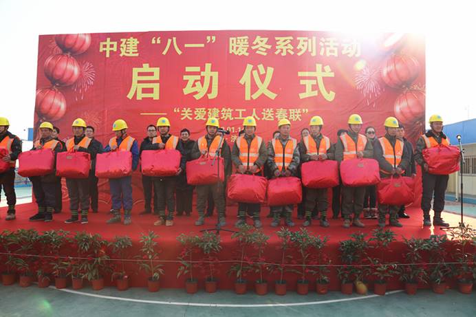 中央商務(wù)區(qū)安置區(qū)“關(guān)愛(ài)建筑工人送春聯(lián)”活動(dòng)現(xiàn)場(chǎng)也同時(shí)是公司暖冬系列活動(dòng)的啟動(dòng)儀式現(xiàn)場(chǎng),公司黨委副書記、工會(huì)主席王有標(biāo)在儀式上發(fā)表致辭。他表示,以“關(guān)愛(ài)建筑工人送春聯(lián)”為“暖冬系列活動(dòng)”開(kāi)場(chǎng),表達(dá)了公司對(duì)建筑工人的關(guān)心關(guān)愛(ài),是公司關(guān)愛(ài)建筑工人、回報(bào)社會(huì)的又一創(chuàng)新舉措。他表示希望通過(guò)本次活動(dòng),能夠?qū)⒅薪ā鞍艘弧迸盗谢顒?dòng)開(kāi)展的有聲有色,能夠在寒冷的冬季為企業(yè)員工、建筑工友們送上一份“家”的溫暖;同時(shí)也希望工友們?cè)诤涞募竟?jié)里施工要注意保暖,按要求落實(shí)安全防范措施,確保安全生產(chǎn),避免各類安全事故的發(fā)生,爭(zhēng)取高標(biāo)準(zhǔn)完成施工任務(wù)。