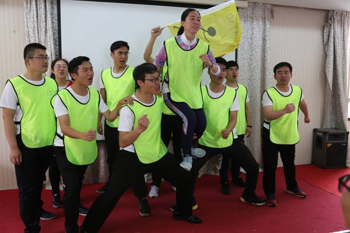 在培訓(xùn)講師的帶領(lǐng)下,大家穿上紅、黃、綠、藍(lán)四色馬甲,劃分為四組。在選隊(duì)長、隊(duì)秘、起隊(duì)名、隊(duì)歌、口號中,拉近了彼此的距離也加深了彼此的熟悉?!案呖諗鄻颉笔且粋€勇敢者的游戲,更是一個團(tuán)結(jié)協(xié)作的游戲,青年們克服內(nèi)心的恐懼,突破自我極限,勇敢走上“高空斷橋”,地面上的小伙們也在團(tuán)結(jié)協(xié)作,拉住繩索,為高空中行走的人保持穩(wěn)定的環(huán)境,在大家的努力下,“恐高癥”患者也成功走過高空斷橋,完美完成任務(wù)。在令人恐懼的指壓板環(huán)節(jié),大家密切配合,在疼痛中奔跑,不斷刷新通過記錄。在活動最后,也是最為艱難、最為感動的翻越“畢業(yè)墻”環(huán)節(jié),40名青年要翻越一面高4.2米的光滑墻面,在此過程中,大家不能借助任何外界的工具,所能用的資源只有每個人的身體?!鞍艘弧鼻嗄晖ㄟ^搭人梯的方法,發(fā)揮各自優(yōu)勢,身體強(qiáng)壯的自愿擔(dān)任底座,力量大的在墻上拉人,通過上下密切協(xié)作,不拋棄、不放棄,拼盡全力,最終只用了15分鐘完成全部翻越任務(wù),受到了講師的一致好評,青年們也在配合挑戰(zhàn)中感受到了團(tuán)隊(duì)的力量、為彼此的信任和幫助而感動。