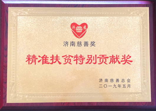 公司榮獲濟南市慈善總會頒發(fā)的精準扶貧特別貢獻獎
