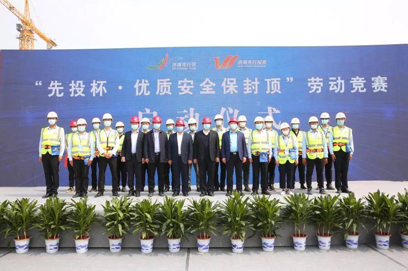 濟南先行投資有限責(zé)任公司董事長兼總經(jīng)理丁杰、先投產(chǎn)發(fā)公司董事長兼總經(jīng)理賈為、中建八局一公司專務(wù)薛樹海、工會工作部部長方健、濟南公司副總經(jīng)理陳前鐘等出席活動。薛樹海在致辭中表示,中建八局一公司將在保質(zhì)保安全的前提下,高標(biāo)準(zhǔn)完成各項節(jié)點計劃。