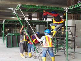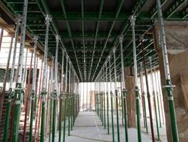 格林快拆體系應用:格林早拆模板由鋼框木模面板、帶早拆構件的立桿組成,操作方便、易于周轉。由于該模板體系操作簡單,有效提高了模板施工效率,且因為是早拆體系,減少了模板一次性投入量。
