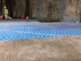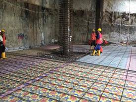 土模法施工技術:利用開挖后的土體作為天然模板,澆筑墊層并鋪設隔離層后綁扎鋼筋、澆筑結構樓板混凝土。通過土模法應用,節(jié)省了樓板模板的投入,相比常規(guī)模板施工,節(jié)約工期約10天。