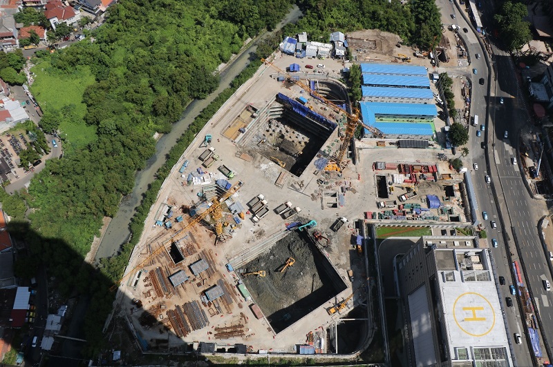 印尼一號雙塔項目建筑面積30.6萬平方米,建筑高度303m,地下七層,地上59層,開挖深度26.77m,局部開挖深度32.2m,屬于超高層、超大深基坑工程。本工程管理的重難點主要為:平面規(guī)劃管理、工期進度管理、深化設計管理、中印技術融合及當?shù)刭Y源整合。