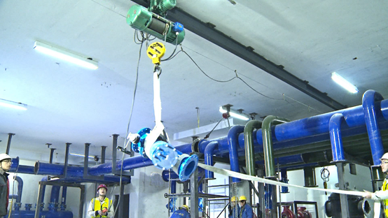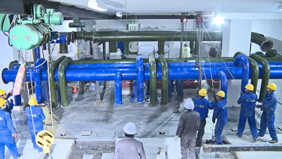 山東省建行綜合營(yíng)業(yè)樓項(xiàng)目制冷機(jī)房面積約330㎡,包含3臺(tái)制冷機(jī)組、8臺(tái)循環(huán)泵、7臺(tái)水處理設(shè)備。除了繼續(xù)1.0時(shí)代的相關(guān)技術(shù),在本項(xiàng)目進(jìn)一步優(yōu)化了現(xiàn)場(chǎng)施工方法,采用管排整體提升技術(shù),并自主研發(fā)了行吊系統(tǒng),極大提升了大型配件裝配過(guò)程中的搬運(yùn)效率,3天時(shí)間便完成了整個(gè)制冷機(jī)房的安裝施工。